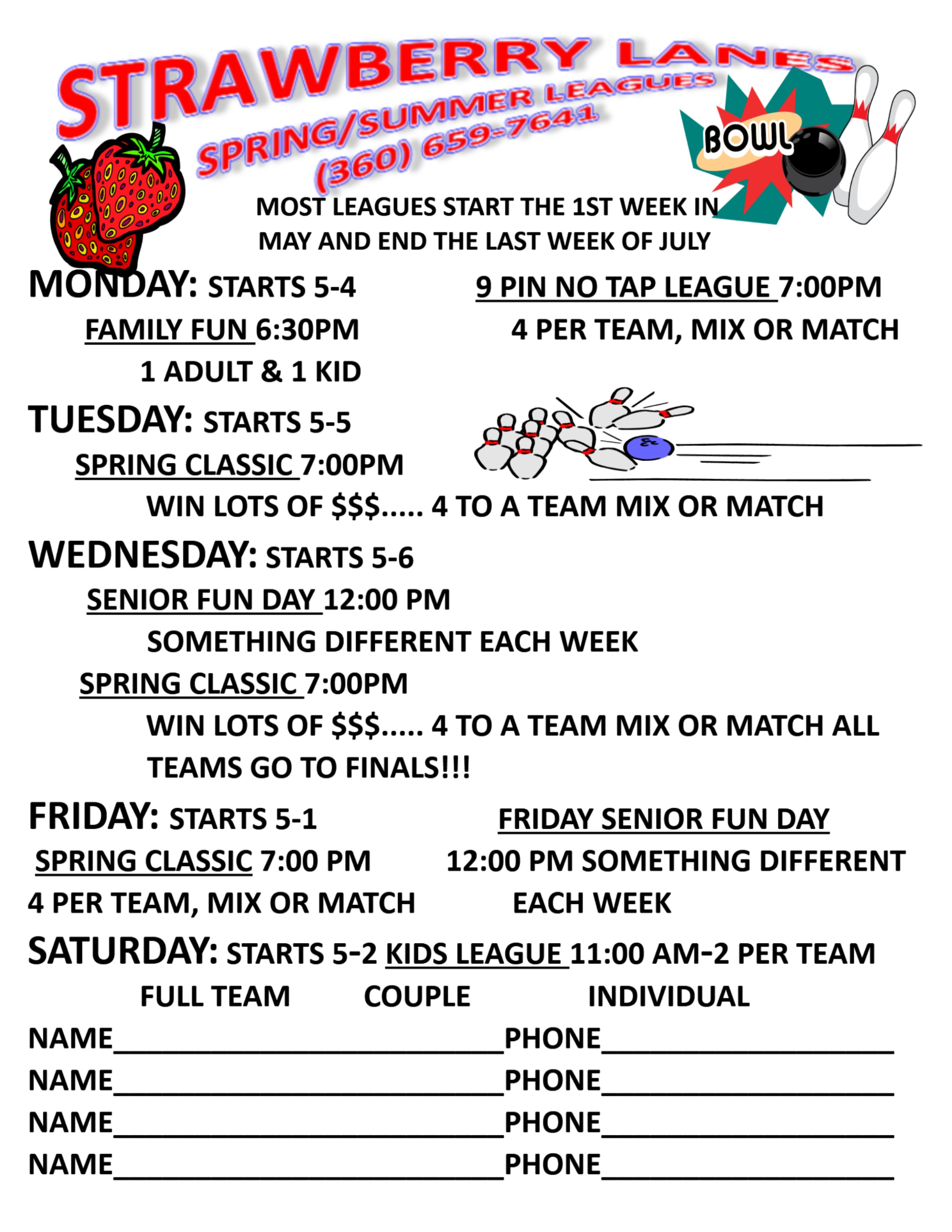 Whether you're new to the sport or a seasoned bowler, Strawberry Lanes makes it easy to find the league to match your interests and skill level. With family, kids, senior, specialty leagues and more — we've got a league for everyone! Invite a group of family, friends or co-workers and we'll help you start your own league.